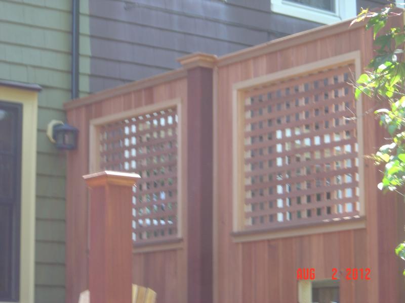 7.21.12 Wow, I guess I have lost track of time, that can only mean one thing. It has been busy, we worked on the Hanover job till about the middle of June. The owner is thinking of adding an addition & we will be going back there in September.Then we did a roof on Central st. in Whitman, 3 story with a dormer & 2 layers of shingles - rip & replace with Landmark 30 yr. architects. Grace Ice & water, 30lb tar paper, 8" aluminum dripedge entire perimeter, windnailed. We also layed a patio deck atop a rubber roof on Harvard st. in Whitman, 5/4 pressure treated decking used for the sleepers & decking, including a perimeter boarder. Spent a couple of weeks on past job in Duxbury on Grandview ave, some custom fencing, re-decking the dock with 2x8 pressure treated deck boards - 180 5 footers, pre drilled & screwed. Now we are in South Boston working on a deck 16x12, mahogany decking & rails with red cedar trims & t&G red cedar privacy walls & weathered proof underneath to put all those wonderful outside things away for the winter. Stay tuned for some photos in the upcoming weeks. Call today for your free estimate on your future home improvement project. 617.462.2828.