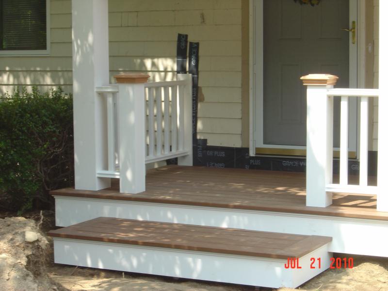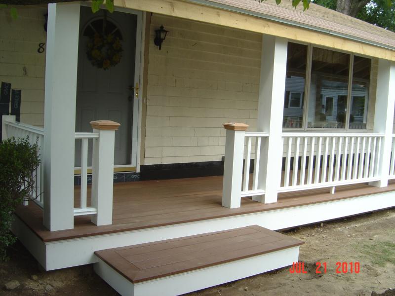 Built 6x36 Farmers porch in Whitman on Benson st. Including roof framing. wind code specifications. Azek decking & Azek trims. Yard master composite railings.