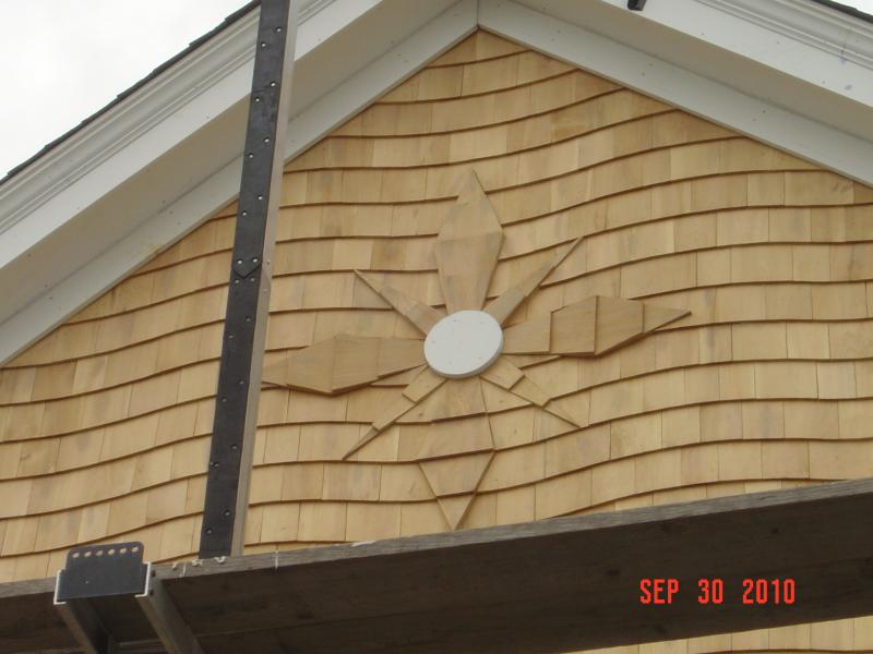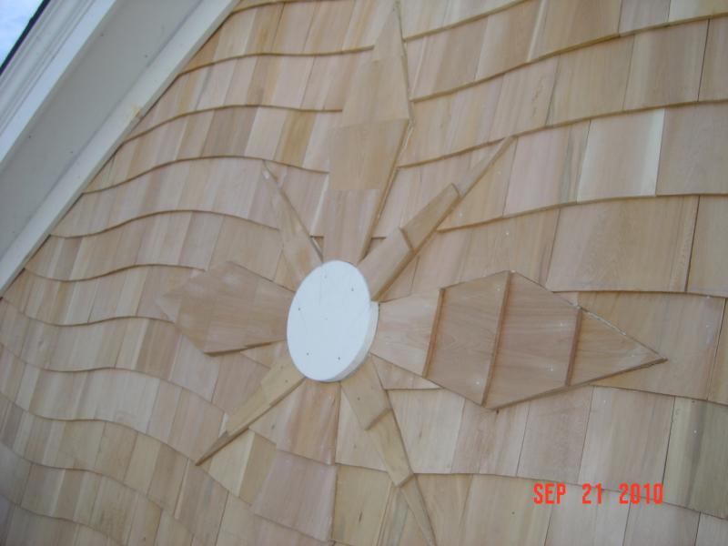 Hi Folks, Sept 30. For the folks who were looking to see the updated photos, I apologize. my computer has been on the fritz. Currently, we are in Scituate on Collier ave. complete roofing, siding and a compass rose on a gable with the wave, blended together using White cedar shingles.