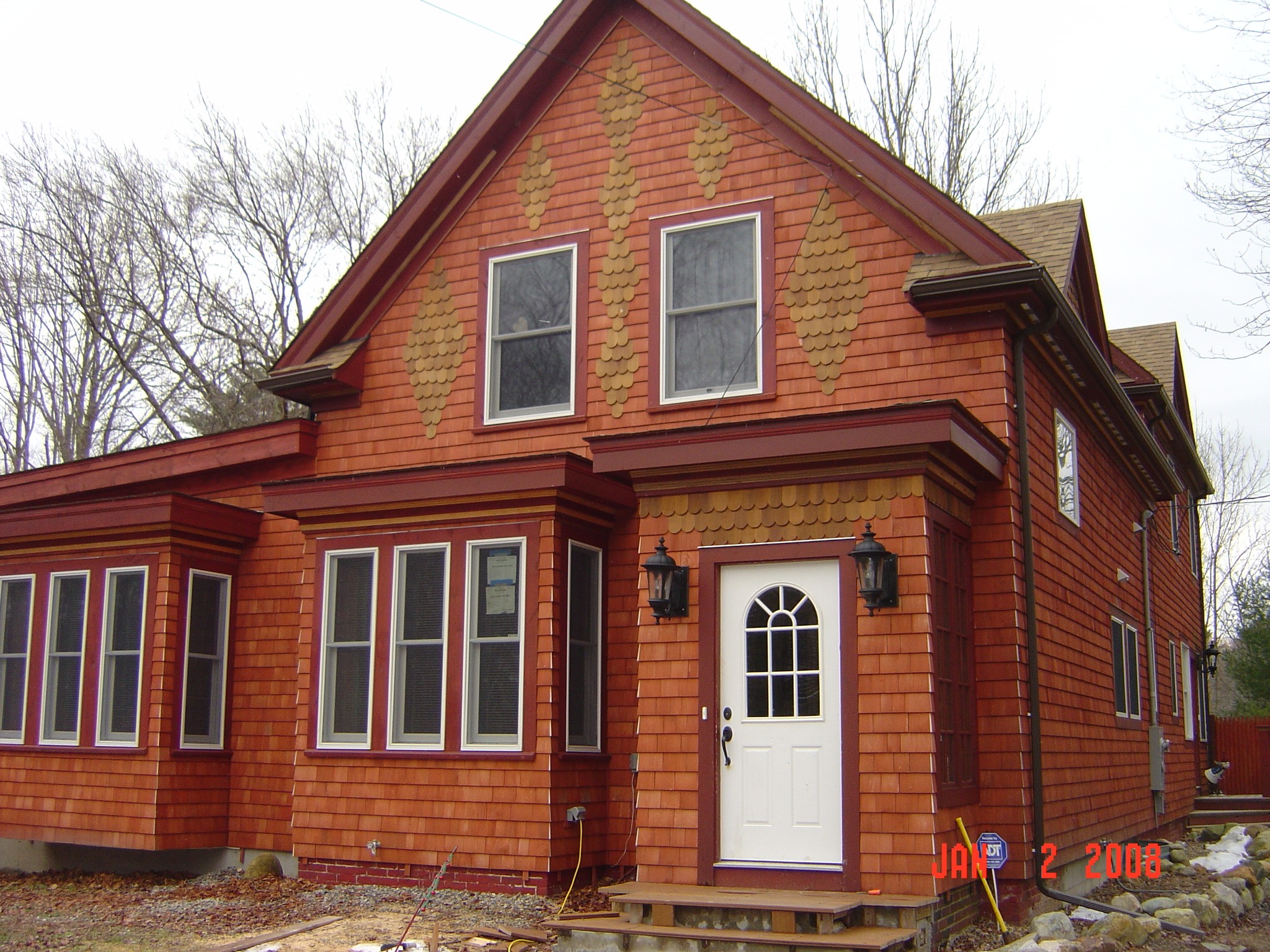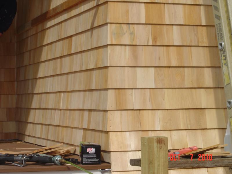 We also framed, insulated & installed Texture 1-11 for a bathroom in Kingston, and we went to Hingham this past weekend & did some siding, consisting of stained red cedars with weaved outside & inside corners. Happy Thanksgiving.