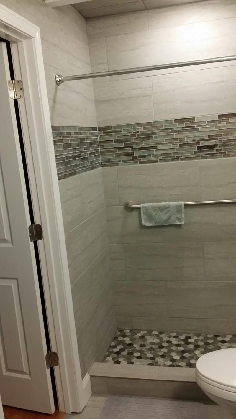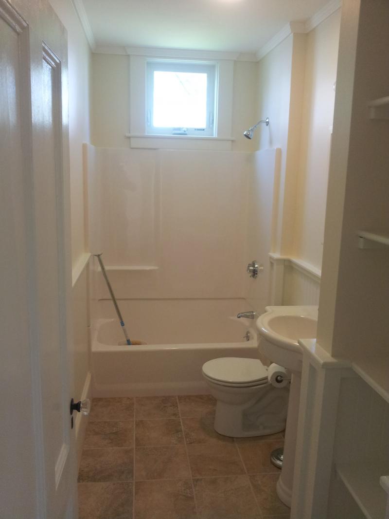 Good morning folks, August 18, 2013. I apologize for slacking in the blog dept. It has been one of the busiest years in a long time, I had a couple of weeks off & boom, everybody called at once. I just finished another bathroom in Whitman center on Washington st. Full gut job including the floor joists, the cast iron tub was ready to fall in the basement. We added Anderson awning windows and a carribean color scheme & carribean floor tiles.