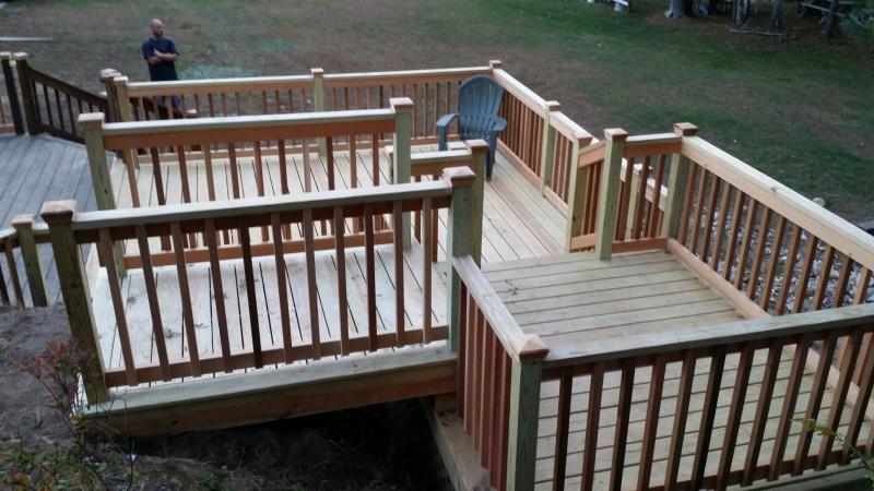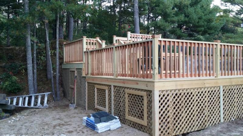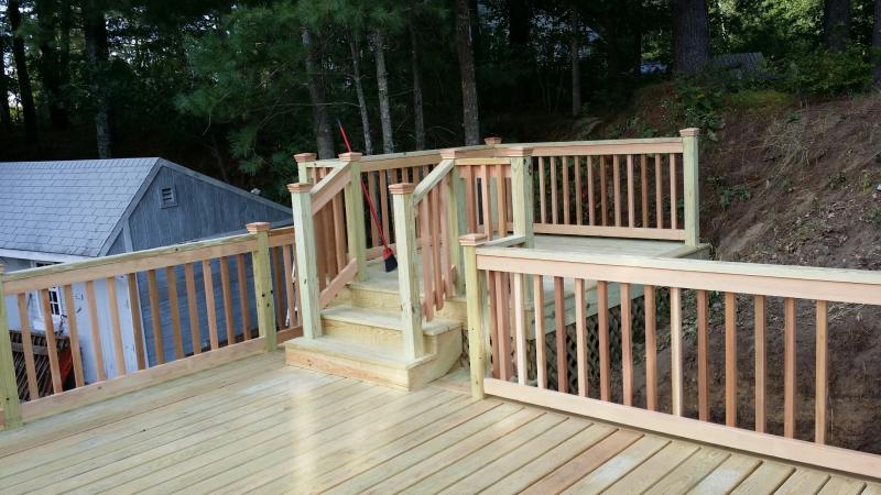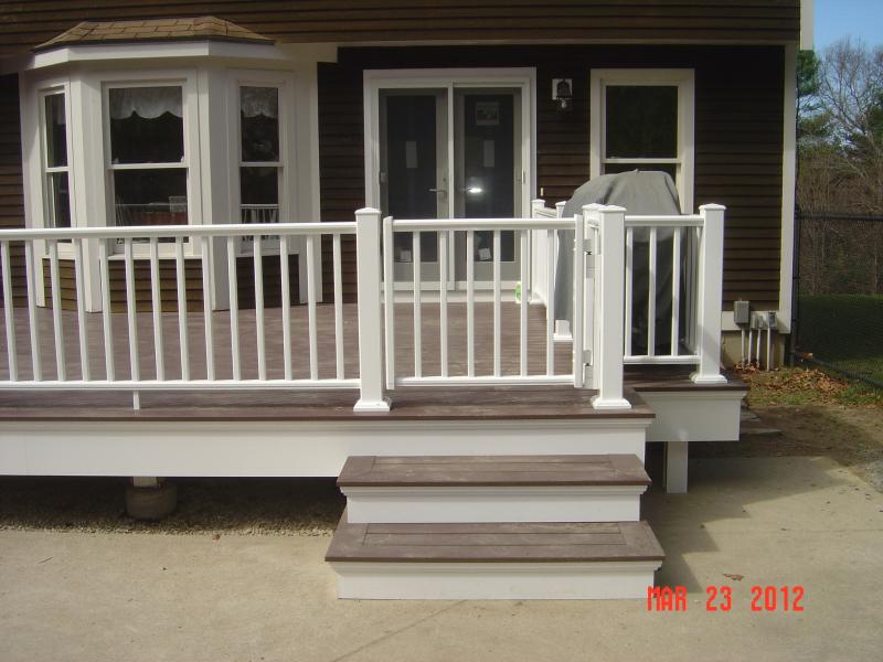 July 5th, 2015 - Well we did not ending going back to Scituate for the windows, it is postponed till late September. Since last checked in, we have done quite a few projects. 3 in East Bridgewater we replaced rotted sills on the foundation of a house on rt. 18 that was sold & the work needed to be done to finalize the deal. The are happily moved & the new owners are in. We also changed a 1st floor full bathroom on North Central st. into a 1/2 bath with elegant corner sink, toilet & washer & dryer. The existing cast Iron tub was removed including the wall in & around the area. Consisting of new plumbing & updated electrical. We removed a pre-cast staircase to the front door of a house, which was way out of level because it was installed on no footings on Wintefeild Drive & installed 2 big foots, 2x10 pressure treated frame & Azek trim around the box & Azek Morano decking. We also stripped the rails & decking of a deck in Stoughton on Tamarack Drive. We removed Pressure treated railing & Pressure treated decking & replaced with Azek decking with Cortex fasteners, Azek railing & Azek Gate. Very sharp.. We installed Azek railings in Whitman on Pine st. 13 rail systems & Azek gate. We are at a basement in Mashfeild on Montana Rd. where we have just gutted a kitchen that was finished 2 months ago & the sheetrock was getting moist & the floor was buckling so we took a look& the past contractor did not install a vapor barrier behind the wall & the rock is wicking up the moisture.. This was another contractor who was not on the up & up.We are going to Kingston on West st. to do a 20x14 deck with Azek decking & custom wood railings, then we are of to Matilda lane in Pembroke to do a couple more decks. Well I think we are caught up.. Call for a Free estimate today - 617.462.2828 or just go to customer contact & fill out the information & I will get back to you as soon as possible.