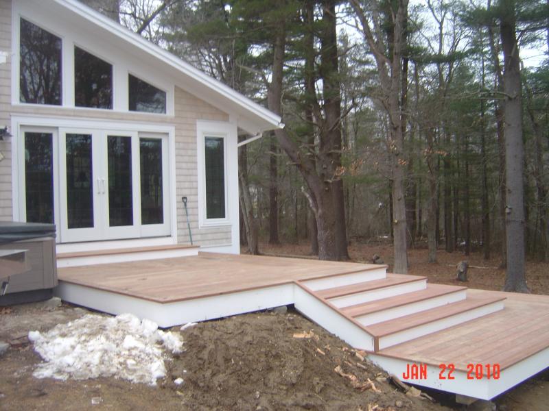 Hi Folks, June 10 2011-- Still working on Grandview Ave. in Duxbury. 2000 sq. ft of 5/4 x6 mahogany decking with azek trim & decorative details. We have a busy summer ahead and are looking to start booking for the fall, call today and lets get together & discuss you next home improvement project.