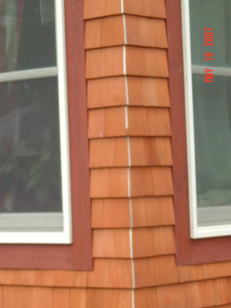 Morning folks, Wednesday, Dec.15. 18 degrees with 15 mph wind. I just worked 17 days straight, I am taking the day off (not working AT the job anyways) We finished in Scituate. All said and done, the roof was 58sq. architecual asphalt with 140' lead coated copper valleys, hundreds of ft. lead coated copper drip-edge, all made right at the site. The siding was Grade A R&R White cedars (Purchased from Cape cod lumber, best price & nice quality) which totaled out at 60sq. Including Weaved corners, the wave & 2 specialty designs all done in white cedars.