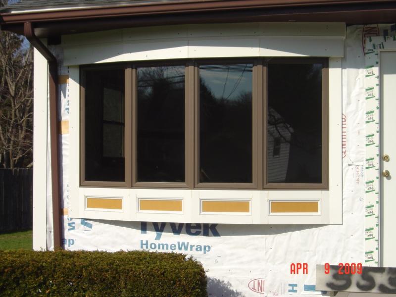 Hi Folks, Friday Oct. 15.09. A good loe nor'easter is rolling thru. The Marshfeild, Moraine rd, job is moving along quite well despite mother nature and still waiting for the permit to build the decks. The barn board is all off, soffits & rakes are chaulked & primed. Most of the trim is on & we have some siding on. Next week we will be embarking on the windows, one of them being a 10' x 6' Pella bow window.
